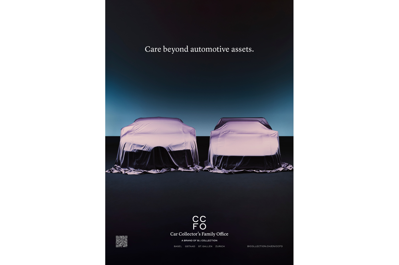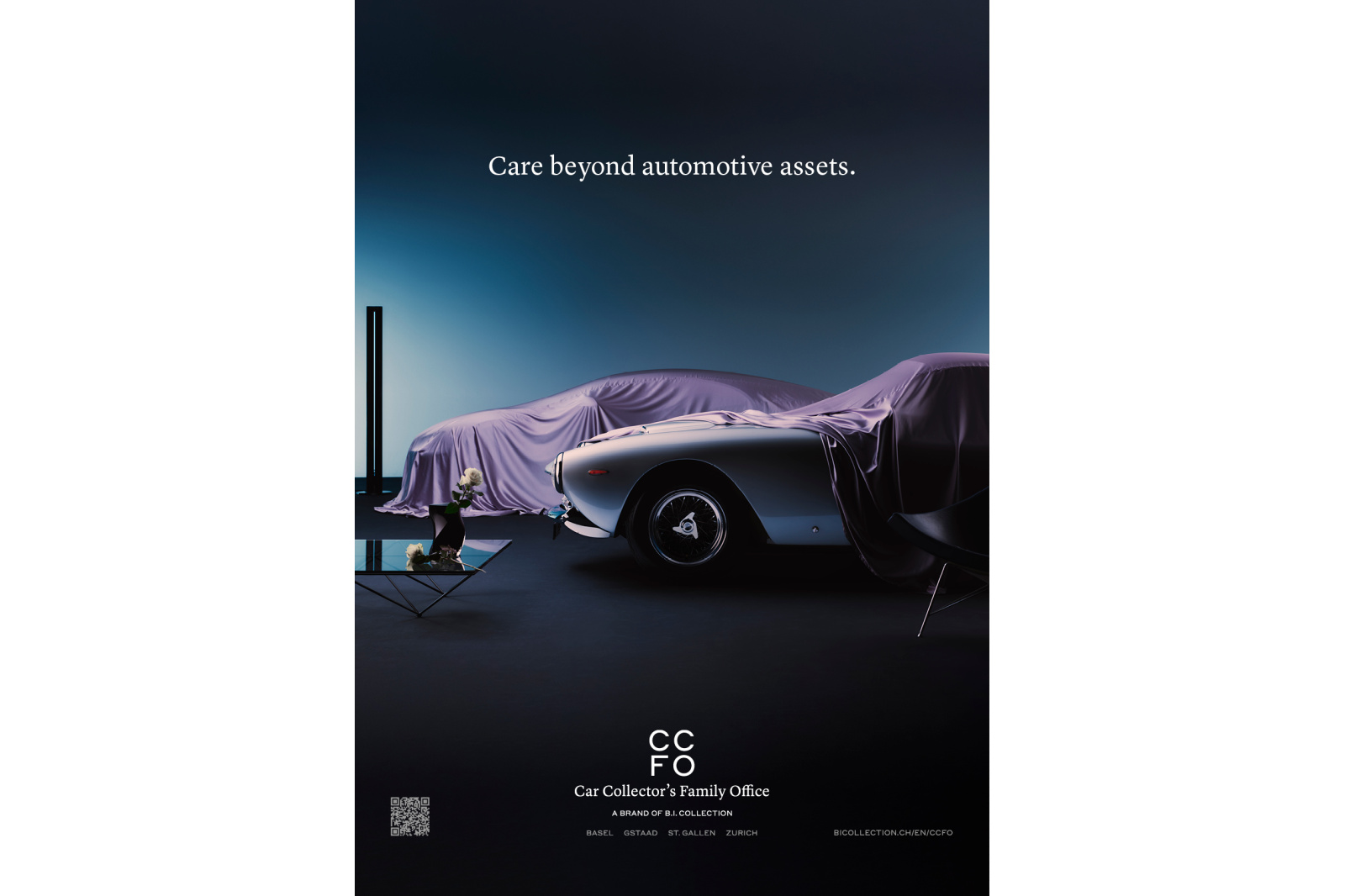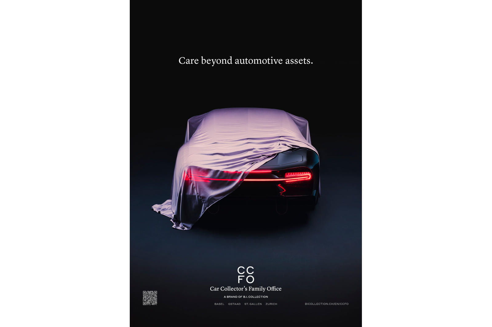 Tailored for automotive enthusiasts, the Car Collector’s Family Office (CCFO) combines the proven services of traditional investment and wealth management with a focus on the unique requirements of car collectors. We realised the whole package, inclunding naming, strategic brand positioning and the advertising campaign.